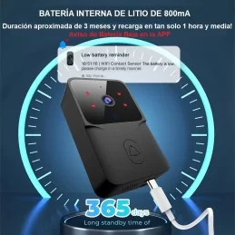 Mirilla electrónica Wifi con pantalla interior para instalar en el orificio de las antiguas mirillas, por lo cual no requiere instalación complicada. Unidad exterior metálica dotada de detección de movimiento, iluminación nocturna infrarroja y botón de llamada. Alerta instantánea con foto de la presencia de intrusos merodeando la puerta (configurable)....