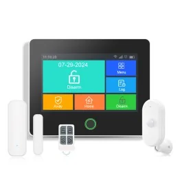 ¡¡¡ALARMA 4G!!! No requiere que haya wifi en el sitio para utilizar la APP Tuya Smart- - Voces y Mensajes en CASTELLANO!! - APP para control y configuración con datos, con aplicación Inteligente Domótica - Programación mediante app. Control por llamadas también. Entradas para sensores cableados. El kit incluye 1 sensor de movimiento PIR...