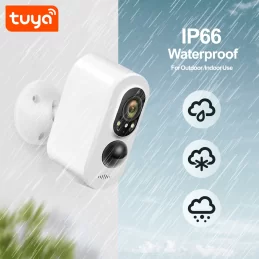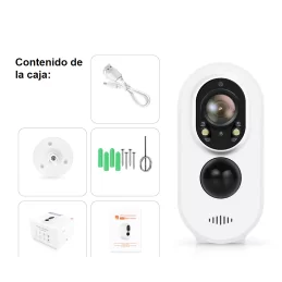 Camara exterior compatible con App Tuya Smart y Smart Life , conexión por Wifi y por cable RJ45 Ethernet - 1440p Full HD con sensor de 3Mpx pixeles, con ranura tarjeta micro SD para realizar grabaciones constantes o por eventos. Doble Iluminación: nocturna infrarroja constante de noche y par de focos integrados de leds visibles que se encienden cuando...